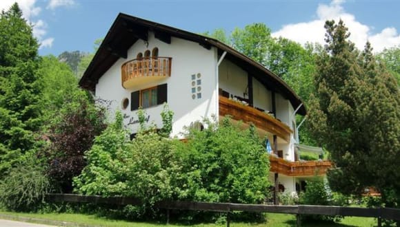 Familiär geführte Pension in Bad Hindelang. Gemütliches Kaminzimmer - Liegewiese mit urigem Blockhaus.