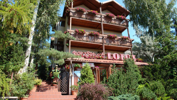 Im Pensjonat Lotos können Sie im hoteleigenen Restaurant köstliche Speisen genießen. Starten Sie Ihren Tag mit einem leckeren Frühstück oder gönnen Sie sich einen Kaffee und ein Dessert im gemütlichen Café.