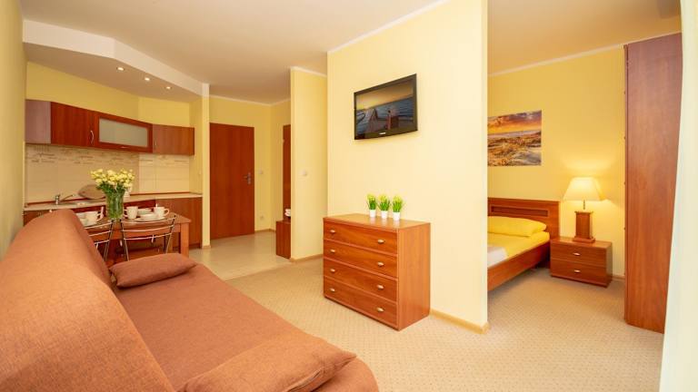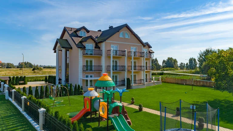 Das Hotel Pensjonat Marynarski - Apartamenty in Darłówko ist der ideale Ort für einen entspannten Aufenthalt in der Nähe des Meeres. Die klassisch eingerichteten Zimmer bieten Ihnen allen Komfort, den Sie benötigen, und das kostenfreie WLAN sorgt dafür, dass Sie immer verbunden bleiben. Der weitläufige Garten mit Grillplatz und Kinderspielplatz lädt zum Entspannen und Genießen ein. Die Nähe zum Hafen, Leuchtturm und Bahnhof ermöglicht es Ihnen, die Umgebung bequem zu erkunden.