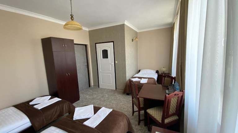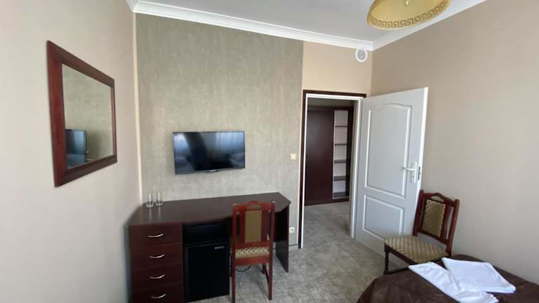 Waren mit einer Gruppe im neuen C-Teil des Hotels. Zimmerservice hat die 4 Übernachtungen quais kaum stattgefunden. Hatten Halbpension, es gab zum Frühtück Instant-Kaffee bzw. polnischen Kaffee und labbriges Brot, das Abendessen gerade so genießbar, einmal einen BECHER Joghurt zum Nachtisch, einmal einen BECHER Pudding. Samstag teilte man uns um 21 Uhr mit, dass wir in 3 Minuten den Restaurantbereich zu verlassen haben, ansonsten war um 22 Uhr Fiinito und keine weitere Möglichkeit im Hotel noch vernünftig zusammen…