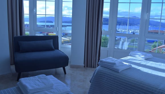 Die Pensión o noso bar befindet sich in Portosín, 400 m vom Strand Praia de Coira und 700 m vom Strand Praia de Gafa entfernt. Weitere Strände in der Umgebung sind Praia das Gaivotas (900 m) und Praia da Telleira (2,3 km). Die Kathedrale von Santiago de Compostela ist 43 km entfernt, während der Flughafen Santiago de Compostela in einer Entfernung von 58 km liegt.