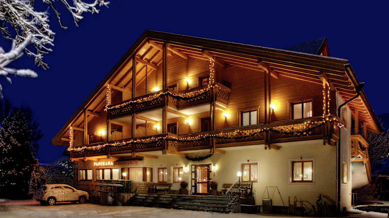 Die Pension Panorama in Welsberg-Taisten, Südtirol, bietet ihren Gästen einen erholsamen Aufenthalt inmitten der traumhaften Berglandschaft des Pustertals. Mit ihrer ruhigen Lage auf einer Anhöhe genießen Besucher einen atemberaubenden Ausblick auf die Dolomiten und die umliegenden Täler, sowie auf Schloss Welsperg.