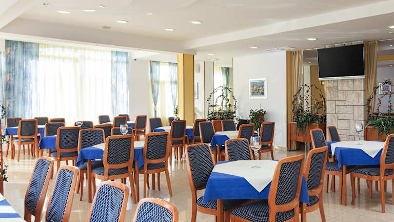 Das Restaurant der Villa Pitomcia ist auf Fischgerichte spezialisiert und bietet eine Auswahl an dalmatinischen Spezialitäten. Das Restaurant öffnet sich zu einer Sommerterrasse und einem malerischen Garten mit Palmen, Blumenbeeten und Olivenbäumen. Von hier aus haben Sie einen herrlichen Blick auf das Meer. Genießen Sie köstliche Gerichte und entspannen Sie in dieser idyllischen Umgebung.