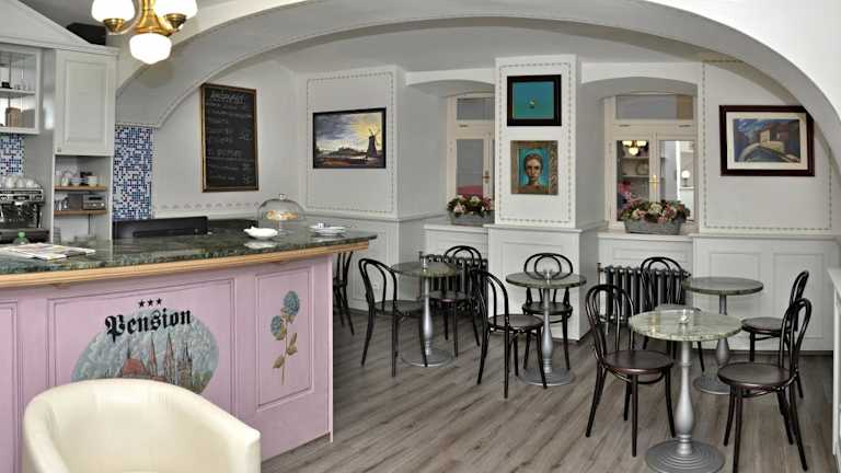 Im Café der Pension können Sie sich bei einer Tasse Kaffee entspannen. Morgens wird ein leckeres Frühstück angeboten, um gestärkt in den Tag zu starten. Gegenüber der Pension lädt ein Restaurant zu einem Besuch ein, wenn Sie die lokale Küche erleben möchten.