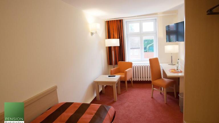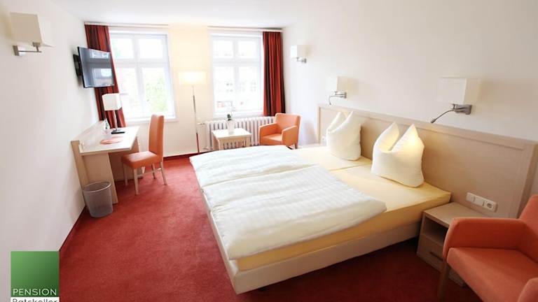 Die Zimmer der Pension Ratskeller sind geräumig und gemütlich eingerichtet. Jedes Zimmer verfügt über ein modernes Interieur mit einem 40-Zoll-Flachbild-TV, einem Schreibtisch und einem eigenen Bad. Das kostenfreie WLAN ermöglicht den Gästen eine bequeme Internetnutzung.