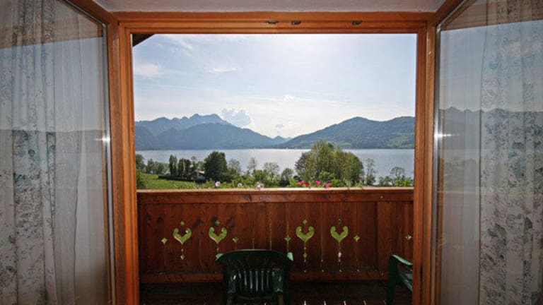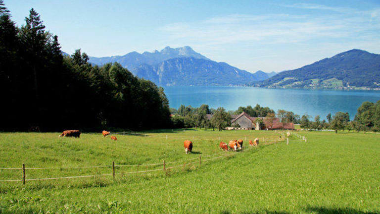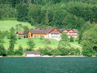 Pension mit 5 Ferienwohnungen. 150m zum Attersee, mit eigenem Badestrand und Bootshütte. Urlaub am Bauernhof mit 4 Blumen ausgezeichnet.
