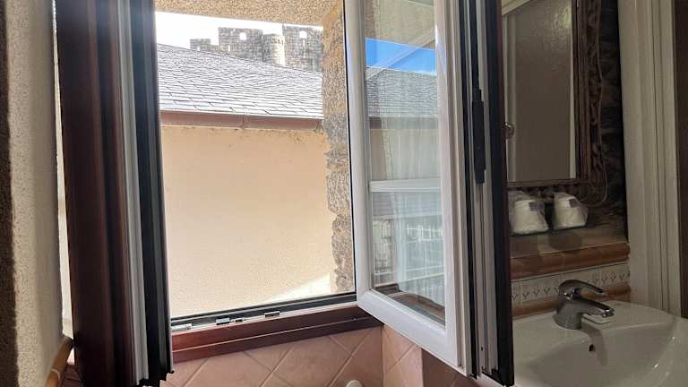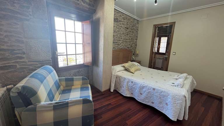 Die Pension Rustica-Caldelas Sacra bietet geräumige Zimmer im Landhausstil, die mit einem Balkon ausgestattet sind und einen malerischen Blick auf das Viertel Ribeira Sacra bieten. Die Zimmer sind beheizt und verfügen über Holzböden, ein gemütliches Sofa und einen Kleiderschrank. Die eigenen Badezimmer sind mit kostenfreien Pflegeprodukten ausgestattet.
