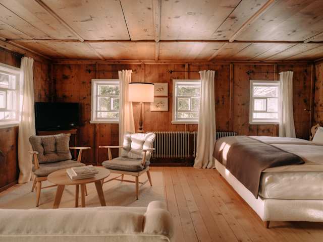 Inmitten des atemberaubenden Arlberg-Skigebietes mit seiner unbeschreiblichen Bergkulisse liegt das Sandbur Walserhaus – ein Ort, an dem Tradition, Naturverbundenheit und echte Gastfreundschaft zusammenfinden. Der Sandbur verbindet den ursprünglichen Charme der Walser-Bauweise mit modernem Komfort und schafft so eine Atmosphäre, in der Sie sich vom ersten Moment an wohlfühlen. Das Sandbur Walserhaus wird exklusiv vermietet an Gruppen von bis zu 10 Personen, sodass unsere Gäste ungestört die Ruhe, Privatsphäre und den besonderen Charme unseres Hauses genießen können. Ob zum Skifahren im Winter oder einfach, um die alpine Ruhe zu erleben – hier genießen Sie unvergessliche Momente in Lech. Fünf Zimmer, jedes davon ein Ausdruck der lokalen Tradition, die sich in der Bauweise und den Materialien der Interiors widerspiegelt, mit Bad ensuite (Dusche oder Badewanne) und allen modernen Annehmlichkeiten ausgestattet, einschließlich kostenfreiem WLAN. Im historischen Zentrum des Dorfes auf dem etwas erhöhten Plateau der Kirchenareals gelegen, sind die Blicke auf die Alte und Neue Kirche, das Alte Tannberggericht und den historischen Messmer-Stall sowie in die schneebedeckten Berge und auf den Ortskern von Lech einzigartig. Enthaltene Annehmlichkeiten: · Nutzung des Walserhauses exklusiv für Gruppen von bis zu 10 Personen · Unterkunft in komfortabel eingerichteten Zimmern, alle mit Dusche oder Badewanne, Toilette, Bademantel und Haartrockner, TV im Zimmer auf Wunsch · Wlan im gesamten Haus · auf Wunsch tägliche Brotlieferung aus der Backstube Lech · Reinigungsservice dreimal pro Woche während des gesamten Aufenthalts · neu renovierte, voll ausgestattete Küche mit angeschlossenen Esszimmer, historische Walserstube und Kaminzimmer · Nutzung unseres Wellnessbereiches im Hotel Schwarzwand (2 Gehminuten entfernt) mit Bio-Sauna, Dampfbad, Wärmebank, Kneipp-Fußbecken, Duschen und Ruheraum · von außen zugänglicher Skiraum · Kostenlose Parkplätze vor dem Walserhaus. Tiefgaragenstellplatz in der Tiefgarage anger (5 Gehminuten entfernt) - Aufpreis € 30,- pro Tag · weitere Leistungen (Wäsche- und Bügelservice, etc.) laut Preisliste.