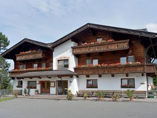 Die kleine Pension liegt in ruhiger, traumhafter Hanglage etwas oberhalb des Ortes Ellmau. Zu Fuß gehen Sie ca. 10 Minuten (ca. 800m) ins Zentrum runter.