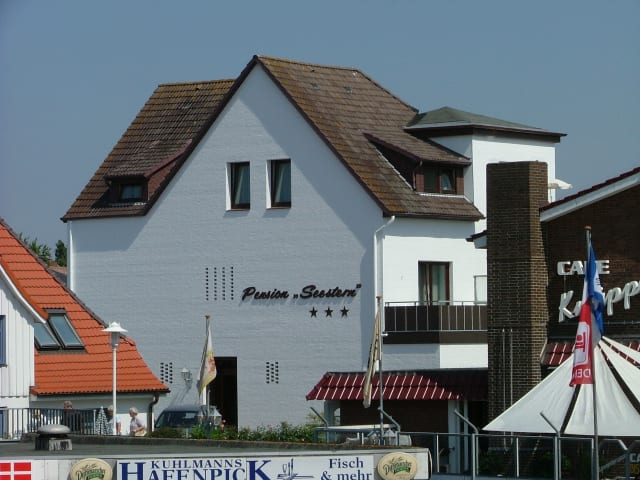 Die Pension befindet sich in exponierter Lage direkt gegenüber dem Haupteingang des Badestrandes, dem Museumshafen mit Leuchtturm, dem Piratenmeer (Meerwasserwellenerlebnisbad) und am Anfang der Fußgängerzone (Haupeinkaufsstraße) mit vielen Restaurants und Einkaufsmöglichkeiten.