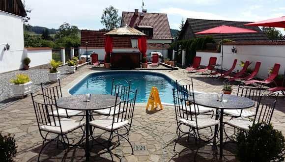 Das Hotel Pension Šejko in Horní Planá ist der ideale Ort für einen entspannten Urlaub am Stausee Lipno. Umgeben von einem schönen Garten mit Grillmöglichkeiten und einem Außenpool, bietet das Hotel seinen Gästen eine komfortable Unterkunft in der Nähe des Strandes. Mit kostenfreiem WLAN, einem Whirlpool und einem Fahrradverleih sind alle Annehmlichkeiten vorhanden, um Ihren Aufenthalt unvergesslich zu machen. Genießen Sie jeden Morgen ein leckeres Frühstück und lassen Sie sich von der Bar mit verschiedenen Getränken verwöhnen. Die Lage des Hotels ist ideal, nur 100 m vom Bahnhof und von Geschäften und Restaurants entfernt. Besuchen Sie auch die UNESCO-Weltkulturerbestadt Český Krumlov, die nur 30 km entfernt liegt. Parkmöglichkeiten stehen auf dem abschließbaren Privatparkplatz zur Verfügung.