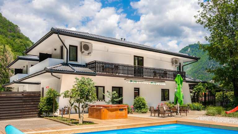 Die Pension Penzion Sterk in Most na Soči ist der ideale Ort für Ihren Aufenthalt in der Stadt. Mit einem eigenen À-la-carte-Restaurant und einer Bar in nur 50 m Entfernung vom Fluss Soča bietet die Pension eine perfekte Kombination aus Komfort und kulinarischem Genuss. Genießen Sie die Annehmlichkeiten wie kostenloses WLAN, eine Terrasse und einen Garten mit Grillmöglichkeiten. Die Zimmer sind gut ausgestattet und verfügen über einen Balkon, Kabel-TV, einen Kühlschrank und ein eigenes Bad. Nutzen Sie die vielfältigen Freizeitaktivitäten in der Umgebung wie Wandern, Angeln, Fliegenfischen und Paragliding.