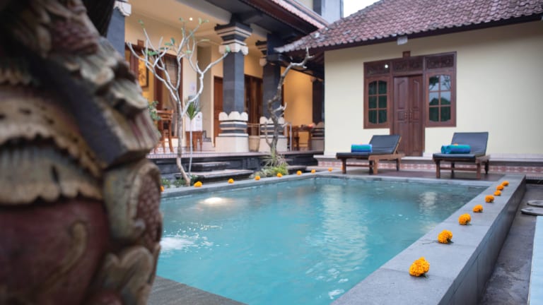 Das Suparsa's Homestay ist eine ideale Unterkunft im Zentrum von Ubud. Die günstige Lage ermöglicht es den Gästen, bequem zu Fuß den Palast von Ubud, den Kunstmarkt und verschiedene Museen zu erreichen. Die Zimmer sind gemütlich eingerichtet und verfügen über eine eigene Terrasse sowie ein eigenes Bad. Das freundliche Personal steht rund um die Uhr zur Verfügung und hilft gerne bei der Organisation von Touren und Flughafentransfers.