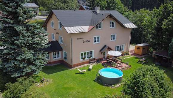 Die Pension Tibor a Luna befindet sich in Černý Důl, 18 km von der Bushaltestelle Strážné entfernt und ist somit gut erreichbar. Die Umgebung wird durch die Nähe zu den Alternativen zum Wintersport, wie Skifahren und Radfahren, geprägt.