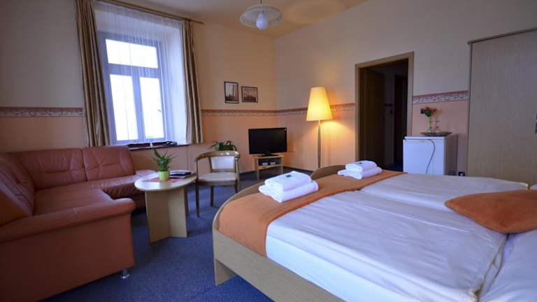Die Pension U Kozicky in Teplice bietet geräumige Zimmer mit moderner Ausstattung und kostenfreiem WLAN. Die zentrale Lage ermöglicht es den Gästen, das historische Zentrum von Teplice sowie Sehenswürdigkeiten wie die Burg und die Kurbäder bequem zu Fuß zu erkunden. Das Restaurant und die Terrasse bieten einen herrlichen Blick auf die Umgebung. Entspannen Sie in der gemütlichen Lounge oder buchen Sie eine erholsame Zeit in der Sauna. Parkplätze sind in der Garage oder auf dem geschlossenen Parkplatz vorhanden.