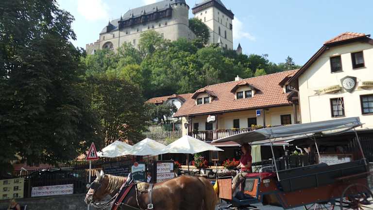 Das Hotel U Královny Dagmar befindet sich in Karlštejn, nur 100 m von der berühmten Burg Karlštejn entfernt. Der Fluss Berounka ist ebenfalls nur 500 m entfernt. Der Bahnhof Karlštejn ist bequem zu Fuß in 1 km erreichbar. Die Umgebung bietet auch einen Supermarkt, der in nur 2 Minuten zu Fuß erreichbar ist. Die Koněprusy-Höhlen liegen 10 km entfernt und die Seen Velká Amerika und Malá Amerika sind 6,5 km entfernt. Der Golfplatz Karlštejn ist nur 4 Fahrminuten entfernt.