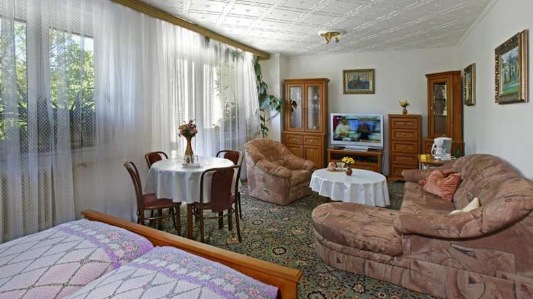 Die Pension Villa Hany liegt inmitten eines wunderschönen Sommergartens und bietet eine ruhige und entspannte Atmosphäre. Der Bahnhof Marienbad ist nur einen kurzen Spaziergang entfernt und Sie können den kostenfreien Abholservice nutzen, um bequem zur Pension zu gelangen. In der Umgebung gibt es zahlreiche Restaurants, von denen das nächstgelegene nur 300 Meter entfernt ist. Das Zentrum des Kurorts erreichen Sie in wenigen Fahrminuten und das Einkaufsviertel von Marienbad ist entweder zu Fuß in 20 Minuten oder in 3 Fahrminuten erreichbar. Die Städte Karlsbad und Pilsen liegen jeweils 65 km entfernt und sind einen Besuch wert.