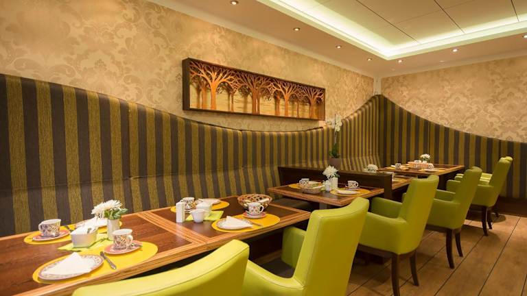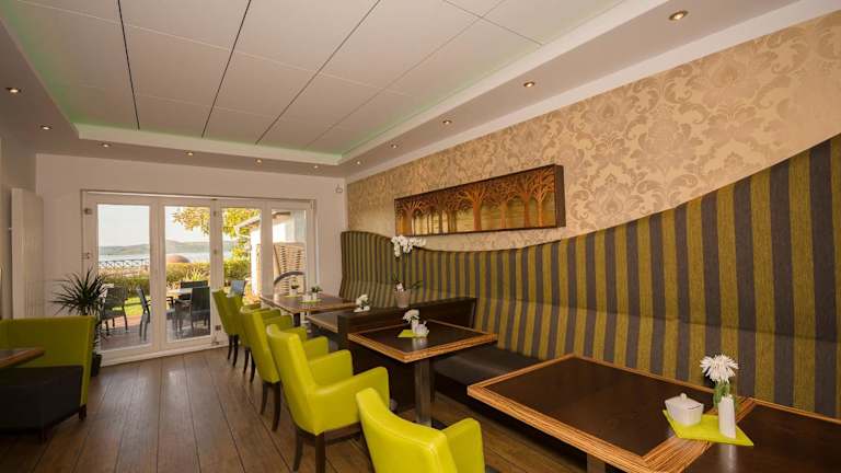 Im hellen Frühstücksraum des Hotels erwartet Sie jeden Morgen ein leckeres Frühstücksbuffet. Starten Sie Ihren Tag gestärkt und genießen Sie eine Auswahl an Speisen und Getränken.