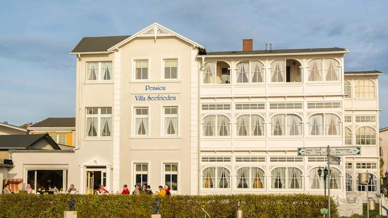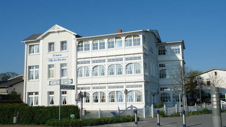 Die Pension Villa Seefrieden befindet sich nur 500 m von der Ostsee entfernt. Die Haltestelle Ostseebad Binz ist 1 km entfernt und bietet eine bequeme Anbindung an den Dampfzug Rasender Roland. Die Autobahn A20 ist etwa 70 km entfernt und ermöglicht Ihnen eine einfache Anreise nach Rostock, das ca. 140 km entfernt liegt.