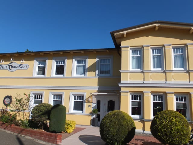 Die Pension Villa Transvaal ist die ideale Unterkunft für einen erholsamen Urlaub in zentraler Lage in Seebad Ahlbeck. Hier können Sie nur wenige Gehminuten von der Ostseeküste entfernt wohnen und von den Annehmlichkeiten der Pension profitieren, wie zum Beispiel dem leckeren Frühstücksbuffet und den kostenlosen Leihfahrrädern. Die Zimmer sind geräumig und mit klassischem Mobiliar ausgestattet. Genießen Sie entspannte Tage am Sandstrand oder spielen Sie eine Runde Golf im nahegelegenen Golfclub Baltic Hills.