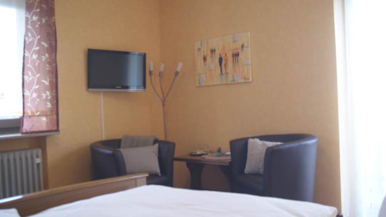 Die Zimmer in der Pension Zur Burgruine sind mit einem Kleiderschrank, einem Flachbild-TV, einem eigenen Badezimmer, Bettwäsche und Handtüchern ausgestattet. Darüber hinaus verfügen die Zimmer über einen Sitzbereich.
