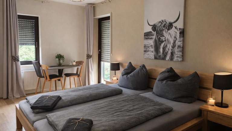 Die Pension zur Quelle befindet sich in Deudesfeld und bietet eine ruhige Lage inmitten der Natur. In der Umgebung gibt es zahlreiche Möglichkeiten zum Radfahren und Wandern. Die Stadt Bernkastel-Kues ist etwa 46 km entfernt und Bad Bertrich erreichen Sie nach 36 km. Der Flughafen Frankfurt-Hahn ist etwa 67 km von der Pension entfernt.