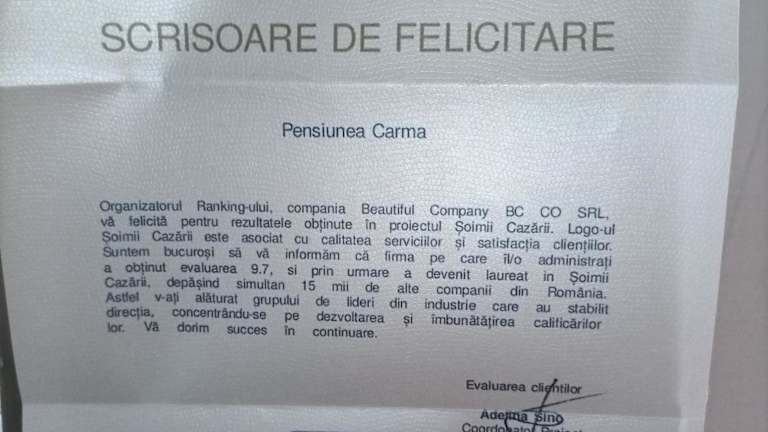 Das Pensiunea Carma befindet sich in Certeju de Sus, nur 36 km vom AquaPark Arsenal entfernt. Die ruhige Lage und die umliegende Natur bieten eine perfekte Umgebung für Outdoor-Aktivitäten wie Wandern und Angeln. Die Burg Corvin und der Gurasada-Park sind ebenfalls in der Nähe und bieten interessante Ausflugsmöglichkeiten. Der internationale Flughafen Hermannstadt ist etwa 136 km entfernt.