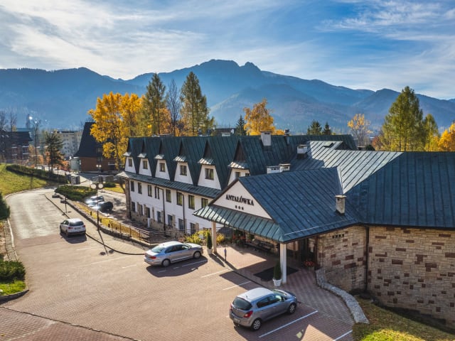 Das Hotel Kompleks Antałówka Termy & Med befindet sich in einer malerischen Lage am Südwesthang des Antałówka-Hügels. Das Zentrum von Zakopane ist nur 10 Gehminuten entfernt, sodass Sie bequem die zahlreichen Geschäfte, Restaurants und Sehenswürdigkeiten der Stadt erkunden können. Die Umgebung des Hotels bietet zudem eine Vielzahl von Outdoor-Aktivitäten wie Wandern, Radfahren und Skifahren in den nahegelegenen Tatra-Bergen.