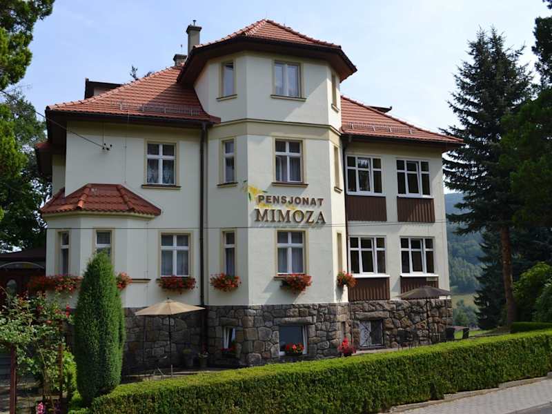 Das Hotel Pensjonat Mimoza in Świeradów-Zdrój ist eine ideale Wahl für Ihren Aufenthalt in ruhiger Umgebung. Es liegt nur wenige Gehminuten vom Zentrum und dem Kurhaus entfernt und bietet geräumige Zimmer mit kostenlosem WLAN. Genießen Sie das reichhaltige Frühstücksbuffet und nutzen Sie die kostenfreien Parkplätze am Haus. Das Hotel bietet auch einen Grillplatz sowie einen Shuttleservice und einen Skiraum. Ein Badmintonplatz und ein Kinderspielplatz stehen ebenfalls zur Verfügung. Die Seilbahn zu den Skipisten erreichen Sie nach einem kurzen Spaziergang.