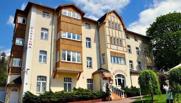 Das Hotel Pensjonat Panorama in Polanica-Zdrój bietet eine zentrale Lage in der Nähe des Kurparks und der Mineralwasserpumpe. Hier können Sie kostenfreies WLAN nutzen und in komfortablen Zimmern mit Kabel-TV übernachten. Entspannen Sie gegen Aufpreis in der Sauna oder im Whirlpool und genießen Sie den Garten mit Grillplatz. Das Hotel bietet außerdem Konferenzeinrichtungen und kostenfreie Parkplätze. In der Umgebung können Sie verschiedene Aktivitäten wie Reiten, Skifahren und Radfahren ausüben.
