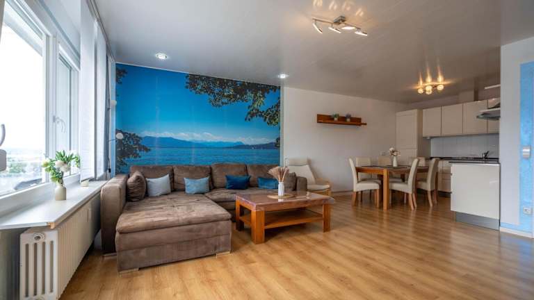 Die Unterkunft Penthaus Schlossbühl befindet sich in Oberuhldingen, nur 28 km von der Messe Friedrichshafen entfernt. Der Bahnhof Friedrichshafen liegt 24 km entfernt, während der Flughafen Friedrichshafen in einer Entfernung von 26 km zu finden ist. Weitere Sehenswürdigkeiten sind das MAC - Museum Art & Cars (42 km) und der Hauptbahnhof Lindau (49 km).