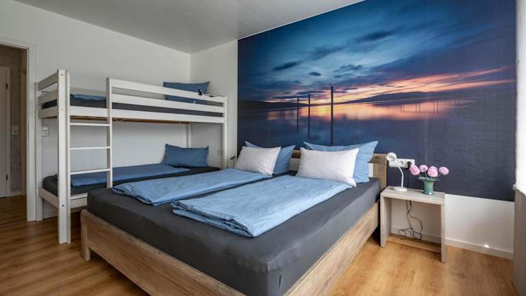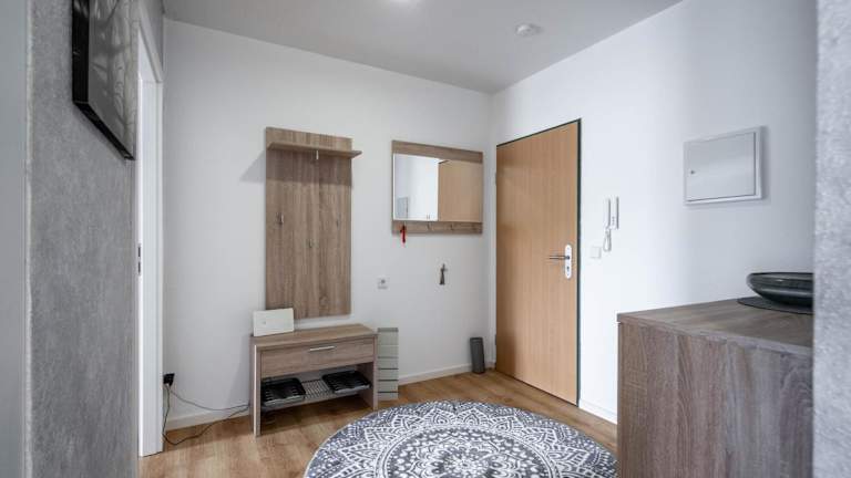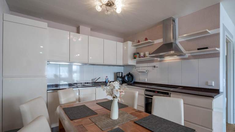 Die Ferienwohnung beinhaltet ein Schlafzimmer, ein Wohnzimmer, einen Flachbild-TV sowie eine gut ausgestattete Küche mit Kühlschrank und Geschirrspüler. Ein Badezimmer mit Dusche ist ebenfalls vorhanden. Handtücher und Bettwäsche werden bereitgestellt.