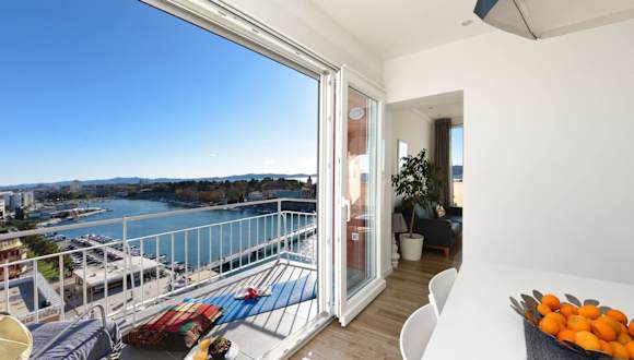Das Penthouse Dolcevita bietet eine luxuriöse Unterkunft mit moderner Ausstattung und einem atemberaubenden Blick auf das Meer und die Stadt. Das geräumige Apartment verfügt über 2 Schlafzimmer, 2 Badezimmer, eine voll ausgestattete Küche und ein Wohnzimmer mit einem Flachbild-Sat-TV. Handtücher und Bettwäsche werden gestellt.