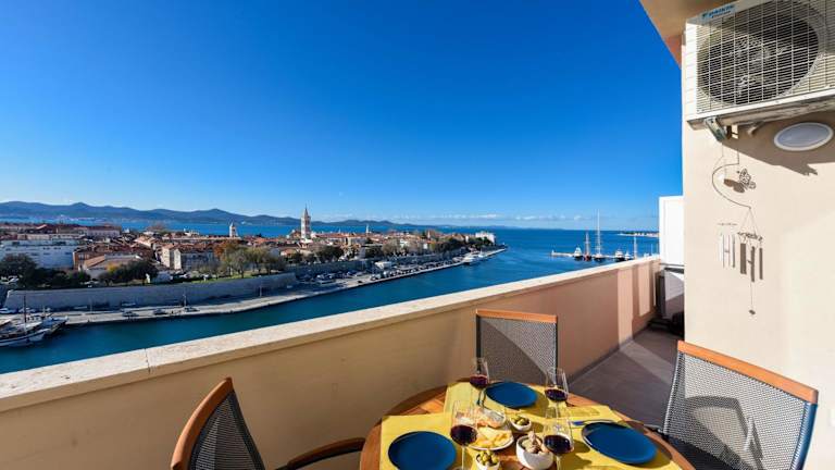 Das Penthouse Dolcevita in Zadar ist eine luxuriöse Unterkunft, die Gästen einen komfortablen Aufenthalt in der Nähe von einigen der beliebtesten Sehenswürdigkeiten der Stadt bietet. Das geräumige Apartment verfügt über eine moderne Ausstattung und bietet einen atemberaubenden Blick auf das Meer und die Stadt. Perfekt für einen luxuriösen Urlaub in Zadar.