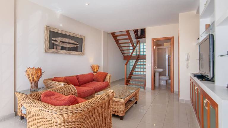 Das PENTHOUSE DUPLEX AVENIDA 1A011 ist ein geräumiges Ferienhaus mit 2 Schlafzimmern. Es verfügt über eine Terrasse, von der aus Sie einen wunderschönen Blick auf das Meer haben. Im Wohnzimmer können Sie sich entspannen und den TV nutzen. Die Küche ist mit einem Kühlschrank und einem Backofen ausgestattet, so dass Sie Ihre eigenen Mahlzeiten zubereiten können. Es gibt auch 2 Badezimmer mit einer Dusche. Handtücher und Bettwäsche werden gestellt, so dass Sie sich um nichts kümmern müssen.