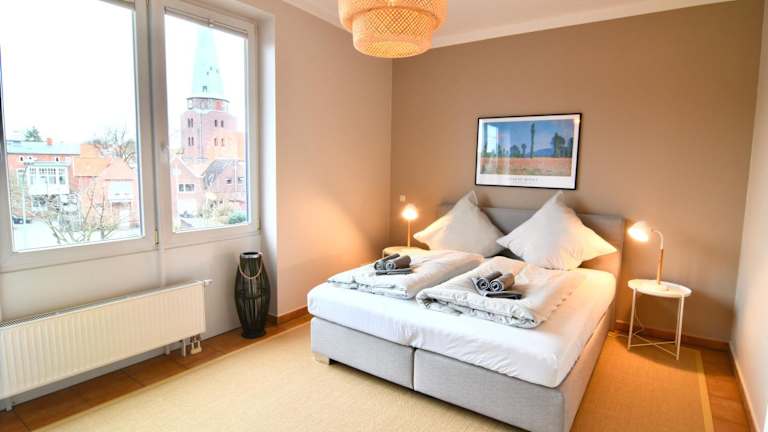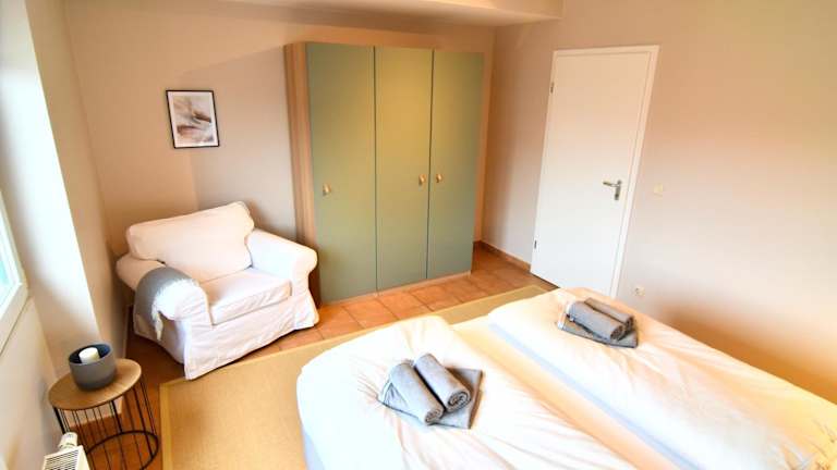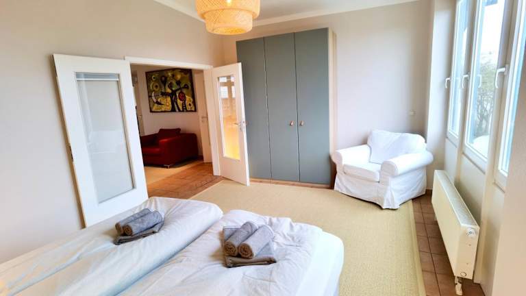 Das Penthouse bietet zwei Schlafzimmer, ein Wohnzimmer sowie eine voll ausgestattete Küche mit Kühlschrank und Kaffeemaschine. Es sind zudem zwei Badezimmer mit Dusche und Haartrockner vorhanden. Handtücher und Bettwäsche werden bereitgestellt.