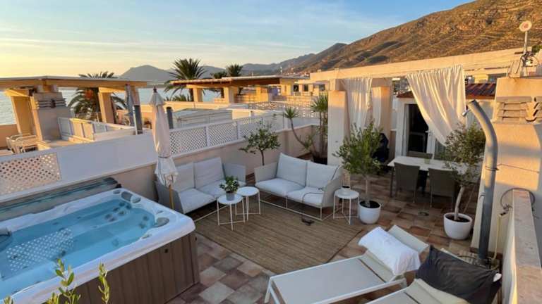 Verbringen Sie einen traumhaften Urlaub im Penthouse La Azohia Beach in La Azohía. Das stilvolle Apartment bietet eine erstklassige Lage, nur wenige Schritte vom Strand entfernt. Freuen Sie sich auf kostenfreies WLAN, eine Terrasse mit eigenem Pool und Grillmöglichkeiten. In der Umgebung können Sie zahlreichen Aktivitäten wie Wandern, Schnorcheln und Radfahren nachgehen. Das Penthouse verfügt über zwei Schlafzimmer, eine gut ausgestattete Küche und ein modernes Badezimmer. Genießen Sie den Whirlpool und den Kinderspielplatz. Entdecken Sie die Schönheit der Umgebung, darunter den Strand La Chapineta und das Golfresort Mar Menor. Der Flughafen Murcia ist nur 38 km entfernt.