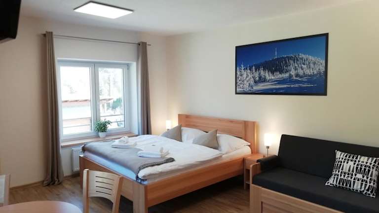 Die Zimmer in der Penzion Adéla sind mit einem Flachbild-TV mit Satellitenkanälen, einem Kühlschrank, einem Wasserkocher, einer Dusche und kostenlosen Pflegeprodukten ausgestattet. Jedes Zimmer verfügt über ein eigenes Badezimmer und kostenloses WLAN. Bettwäsche und Handtücher sind vorhanden. Ausgewählte Zimmer bieten zudem Bergblick.