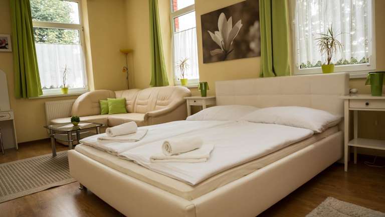 Die Zimmer im Hotel Penzion Burra sind komfortabel und modern eingerichtet. Sie verfügen über einen Flachbild-Sat-TV und kostenloses WLAN. Einige Zimmer haben ein eigenes Bad, während andere Zugang zu einem Gemeinschaftsbad haben.