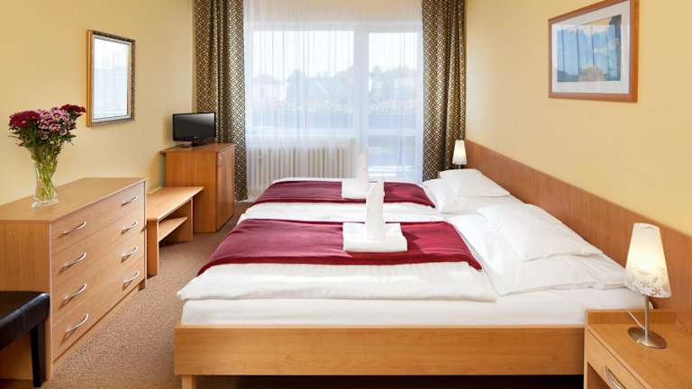 Jedes Zimmer in der Penzion Hubert Františkovy Lázně ist mit einem Schreibtisch, einem Flachbild-TV, einem eigenen Badezimmer, Bettwäsche und Handtüchern ausgestattet. Einige Zimmer verfügen über einen Balkon, und alle sind mit einem Wasserkocher und Kühlschrank ausgestattet. Schallisolierte Zimmer sind ebenfalls vorhanden.