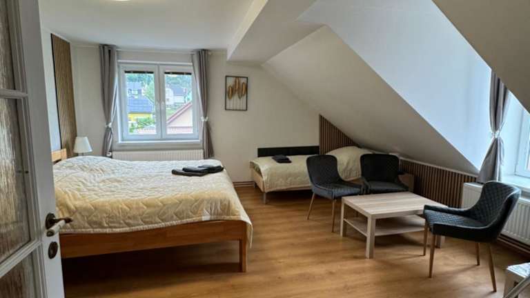 Die PENZION Karin befindet sich in Rýmařov, 46 km von der Festung Olmütz und 27 km vom Altvater entfernt. Weitere Sehenswürdigkeiten in der Umgebung sind das Papiermuseum Velké Losiny (32 km) und die Dreifaltigkeitssäule (48 km). Der Hauptbahnhof Olomouc liegt 46 km entfernt, die Main Bus Station Olomouc 47 km. Der nächstgelegene Flughafen ist der Flughafen Ostrava in 85 km Entfernung.