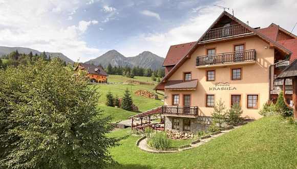 Die Penzion Krasula befindet sich in einer ruhigen Gegend in Zdiar, nur 10 Meter von der eigenen Skipiste entfernt. Die Umgebung bietet Zugang zum Tal Bachledova, welches 6 km entfernt liegt, sowie zum Skigebiet Jurgów in Polen, das 9 km entfernt liegt. Der Aquapark Bukowina ist nach einer 30-minütigen Fahrt erreichbar.