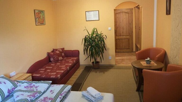 Die Penzion Lampas in Poprad ist eine ideale Wahl für Ihren Aufenthalt in der Stadt. Mit ihrer günstigen Lage am Rande von Poprad und nur 300 Meter vom Aquacity Water Park entfernt, bietet die Pension kostenfreie Parkplätze und WLAN im gesamten Gebäude. Die Zimmer und Studios sind gemütlich eingerichtet und verfügen über ein eigenes Bad und einen Sat-TV. Die Pension ist ein perfekter Ausgangspunkt für Ausflüge in die Hohe Tatra und das Stadtzentrum von Poprad ist nur 500 Meter entfernt. Als Gast der Pension erhalten Sie auch Rabatte für den Aquacity Water Park und das Restaurant in der Nähe.