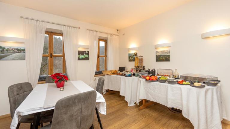 Die Pension Quest bietet keine Verpflegung vor Ort an. In der Nähe finden Sie jedoch eine Vielzahl von Restaurants und Cafés, in denen Sie lokale Spezialitäten genießen können. Das freundliche Personal der Pension steht Ihnen gerne mit Empfehlungen und Reservierungen zur Seite.