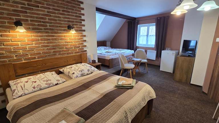 Das Penzion - Restaurant U Zámku in Bečov nad Teplou (Petschau) ist eine haustierfreundliche Unterkunft, die sich direkt neben einem beeindruckenden Barockschloss und einer gotischen Burg aus dem 14. Jahrhundert befindet. Hier können Sie nicht nur in einem komfortablen Zimmer mit kostenfreiem WLAN übernachten, sondern auch im hauseigenen Restaurant speisen oder auf der Terrasse entspannen. Die Unterkunft bietet zudem Annehmlichkeiten wie einen Ticketservice und eine gemütliche Lounge. In der Umgebung gibt es zahlreiche Aktivitäten wie Reiten, Radfahren und Wandern zu entdecken.