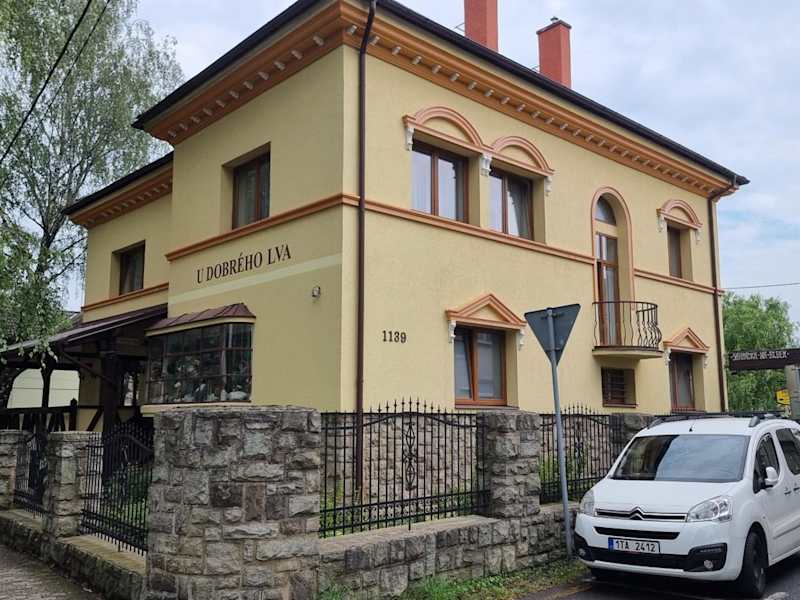 Die Penzion u dobrého lva bietet eine Nichtraucherunterkunft mit einem Garten, einer Terrasse und einer Bar. Zu den Annehmlichkeiten gehören ein kostenloser Privatparkplatz sowie ein Tourenschalter, der Informationen zu örtlichen Aktivitäten bereitstellt. Die Unterkunft verfügt zudem über einen Wasserpark in der Umgebung, was zusätzliche Freizeitmöglichkeiten bietet. Der Check-in ist von 14:00 bis 22:00 Uhr möglich, während der Check-out von 08:00 bis 10:00 Uhr erfolgt. Es gelten Altersbeschränkungen für den Check-in und es sind keine Haustiere erlaubt. Die Unterkunft ist geeignet für Familien.