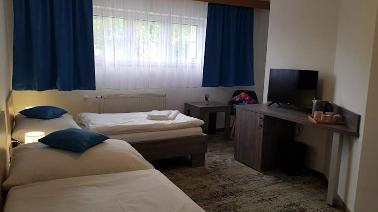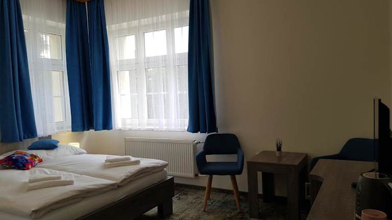 Die Zimmer im Penzion Vila Tereza sind komfortabel und bieten alle Annehmlichkeiten, die Sie für einen angenehmen Aufenthalt benötigen. Jedes Zimmer verfügt über einen TV und ein eigenes Badezimmer mit Dusche. Einige Zimmer sind auch mit einer Küchenzeile und einem separaten Sitzbereich ausgestattet, so dass Sie sich wie zu Hause fühlen können.