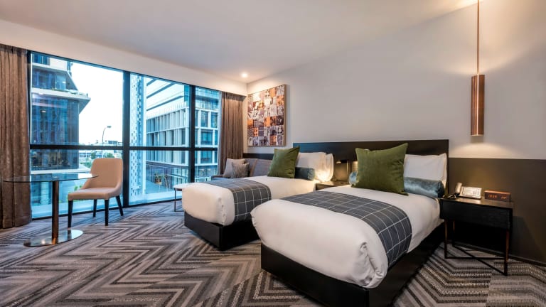Die Zimmer im Rydges Perth Kings Square sind komfortabel und stilvoll eingerichtet. Jedes Zimmer verfügt über moderne Annehmlichkeiten wie kostenfreies WLAN, einen Flachbildfernseher und eine Minibar. Sie können sich in Ihrem eigenen Raum zurückziehen und sich entspannen, während Sie den Blick auf die Stadt oder den Innenhof genießen.