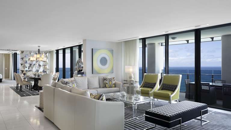 Die 185 Zimmer des Hotels erstrecken sich über 77 Etagen und sind modern eingerichtet. Jedes Zimmer verfügt über raumhohe Fenster, eine voll ausgestattete Gourmetküche, Wäschemöglichkeiten und ein eigenes Bad mit Hausschuhen. Zur Ausstattung gehören auch ein Flachbild-Sat-TV, WLAN und ein Balkon. An der Rezeption erhalten Sie Zahnpflegesets, Rasierzubehör und weitere Pflegeprodukte.