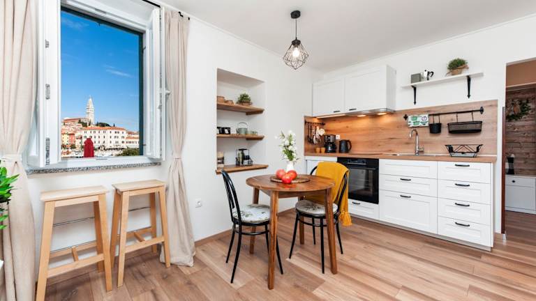 Das Perla Adriatica ist ein charmantes Apartment in Rovinj, das weniger als 1 km von verschiedenen Stränden entfernt liegt. Mit einer atemberaubenden Aussicht auf die Stadt und das Meer sowie kostenfreiem WLAN bietet das klimatisierte Apartment den Gästen allen Komfort, den sie für einen erholsamen Aufenthalt benötigen. Die voll ausgestattete Küche und das moderne Badezimmer tragen zu einem angenehmen Aufenthalt bei. In der Nähe des Apartments finden Sie beliebte Sehenswürdigkeiten wie die Kathedrale St. Eufemia Rovinj und den Yachthafen von Rovinj.